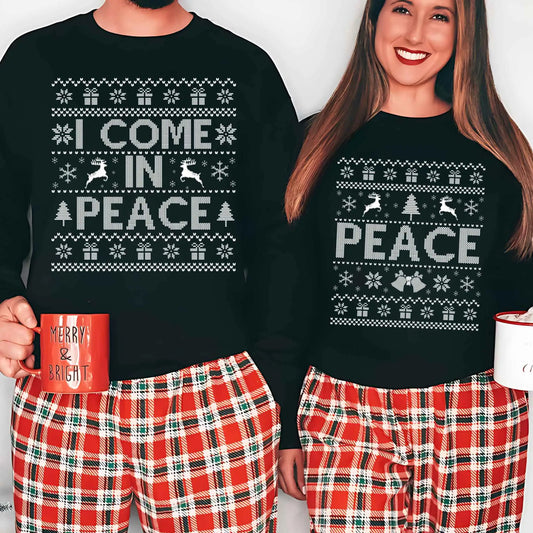 Matching Christmas Couple Sweatshirt - Peace
